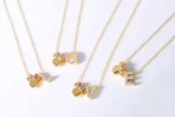 Disney Minnie Mouse Sterling Silver Gold Plated Cubic Zirconia Initial Pendant Necklace, 18″