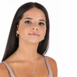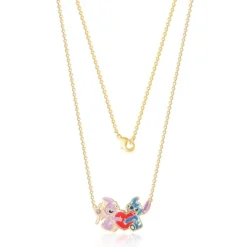 Disney Mickey And Minnie Mouse Sterling Silver Cubic Zirconia Moon Pendant Necklace, 18″