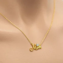 Disney Jewelry For Mom – Mom Gold Plated Sterling Silver CZ Princess Tiara Design, Script Mom, 18″