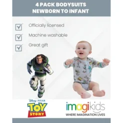 Disney Pixar Toy Story Rex Slinky Dog Buzz Lightyear Baby 5 Pack Bodysuits Newborn To Infant