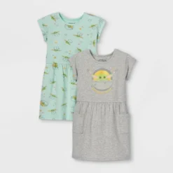 Disney Toddler Girls’ 2pc Star Wars Baby Yoda Knit Short Sleeve Dress – Heather Gray
