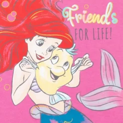 - Featuring Beauty and the Beast’s Belle with roses and words “Dream it! Do it!” on yellow; Little Mermaid’s Ariel with Flounder and phrase “Friends for Life!” on pink; Aladdin’s Jasmine with motto “Always be You!” on blue; Words “Live Like a Princess” on pant leg