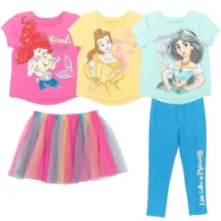 - Officially licensed Disney Princess toddler girls 3 piece mix n’ match clothing set: short sleeve graphic tee shirt, leggings, and skirt
