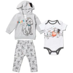 Dress your little one in this adorable baby outfit and get ready for a day filled with Disney magic. This cute and stylish set comes with a soft creeper, comfy pants, and a matching hoodie featuring adorable artwork of your favorite classic Disney characters. Watch your child go on adventures with characters like Mickey Mouse, Minnie Mouse, Winnie the Pooh, Bambi, Marie from the Aristocats, and the spotted puppies from 101 Dalmatians. With such timeless and classic characters on their side, your little one is sure to shine!