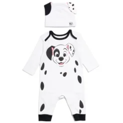 - Clothes for babies 0-24 months with stylish and playful character designs; One-piece coveralls and matching hat with a comfortable fit that is easy to dress your little one in