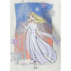- Awesome artistic screen print design of Queen Elsa on sweater with glitter snowflakes; White contrast side tapings on blue pants; Stylish fashion crossover design
