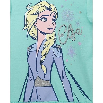 - Officially licensed Disney Frozen little girls short sleeve graphic tee shirt and cute and stylish shorts