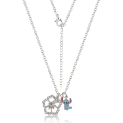 - Offcially Licensed Disney Lilo & Stitch Jewelry: Celebrate ohana and the playful nature of Stitch with this fun, authentic Lilo & Stitch pendant and charm necklace in faux rhodium-plated brass