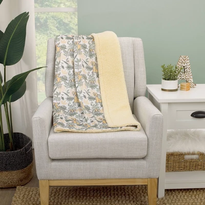 Wrap your baby in cozy comfort with the Disney Baby Lion King Super Soft Sherpa Blanket! This plush yellow, green, and white blanket features Simba with jungle leaves. Measures 30″ x 40″ and is made of snuggly soft fabrics with cuddly, yellow sherpa on the back. This blanket makes a wonderful gift and coordinates with the full line of Disney Baby giftables!