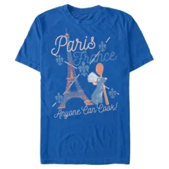- Strut your stuff with this stylish new Men’s Graphic T-Shirt that is perfect for every occasion! Featuring Remy wearing a toque and holding a spoon with the Eiffel tower in the background along with the phrase: “Anyone can cook,” and the text: “Paris France,” across the shirt.