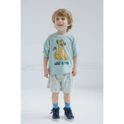 Get ready for a day filled with Disney magic in this stylish Disney tee and shorts set! This cool short sleeve shirt and shorts set features fun artwork your kid will be excited to wear, with iconic characters like Mickey Mouse, Simba from The Lion King, and Lightning McQueen from Cars. Made of a soft loop terry material that keeps your child comfortable, this fashionable Disney outfit is perfect for all day adventure and play!