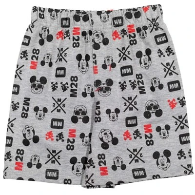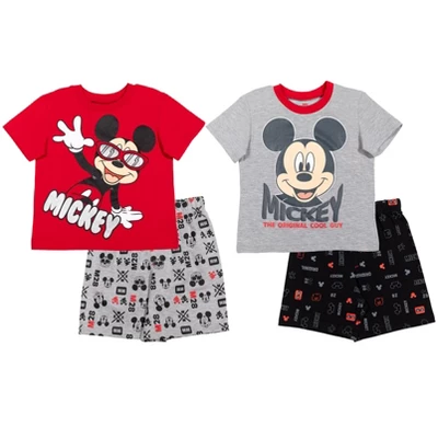 - Disney Mickey Mouse infant boys red and grey 4 piece mix n’ match outfit set including 2 short sleeve tee shirts and 2 pairs of shorts