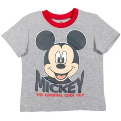 - Screen print design featuring Mickey Mouse with his name in silver metallic ink, adorable smile, sunglasses and the words “The Original Cool Guy”; Shorts: awesome all-over print design featuring all his favorite Mickey Mouse symbols and designs