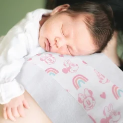 These Disney Baby Minnie Mouse 2-Pk Muslin Burp Cloths are multi-purpose baby essentials! They are 100% super soft cotton 2 plies for great absorbency with center panel muslin prints. Measures 10″ x 20″ and is great for everyday use. Coordinates with a full line of Disney Baby for an amazing gift! Machine wash safe.