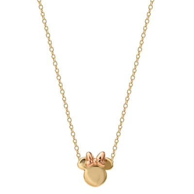- Officially Licensed Disney Jewelry: A pretty, gleaming gold plated Minnie icon with rose gold plated bow on a slider style necklace adds a joyous touch to any outfit.