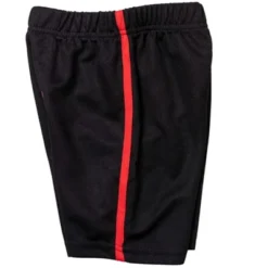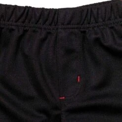 - Comfortable athletic performance material for an active lifestyle; Rib knit crew neck collar; Contrast taping; Faux fly; Breathable mesh; Elastic waist for better fit; Pull on closure