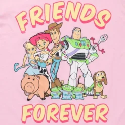 - Your child’s favorite tee’s featuring Sheriff Woody Space Ranger Buzz Lightyear and forky with the iconic toy story logo and “friends forever”