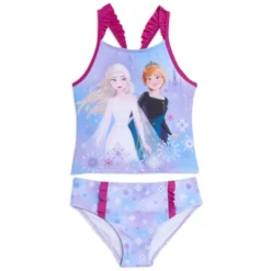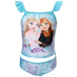 Explore the kingdom of Arendelle with the magical characters of Frozen! Queen Elsa, Princess Anna, Kristoff, Olaf and Sven need all the help they can get to run the kingdom, control Elsa’s wintry elemental powers, and keep the peace with the Northuldra of the Enchanted Forest. Get your little one ready for the storybook, fairy-tale adventure of a lifetime with this Disney Frozen Tankini Top Swimsuit & Swim Bikini Bottom. Your child will look so adorable in this cute and stylish bathing suit swimwear top and cute and stylish full coverage bottom featuring their favorite animated movie and short film characters, they will always love wearing it.