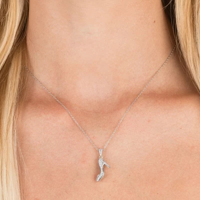 Disney Princess Cinderella Sterling Silver Cubic Zirconia Slipper Necklace, Officially License