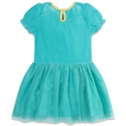Give your little one the Royal Treatment with this Disney Princess Short Sleeve Dress & Tights & Headband featuring Princess Jasmine from Aladdin. In this [PieceDescriptionKeywords] your little girl will look as pretty as a princess as she joins Jasmine for a fairy tale adventure. Dressed in this ensemble fit for royalty, she’ll be ready to explore a whole new world, fly high on a magic carpet with Aladdin, and have fun with favorite characters like Rajah, the Genie, and Abu.