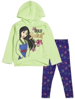 Give your little one the Royal Treatment with this Disney Princess Hoodie & Leggings. In this cute, comfy and stylish long sleeve graphic hooded sweatshirt and cute and stylish leggings your little girl will look as pretty as a princess as she joins Cinderella, Belle, Ariel, Sleeping Beauty, Moana, Rapunzel, Jasmine, Tiana and all the rest of her favorite Disney characters for a fairy tale adventure. Dressed in this ensemble fit for royalty, she’ll be ready to put on her crown, explore the castle and lead the people of the kingdom from the throne!