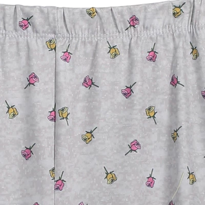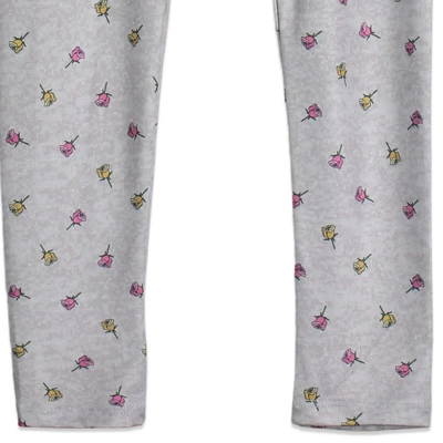 - Featuring adorable gold glitter screenprint design of Princess Belle and the text “Bold Beauty” on yellow sweater; Grey leggings feature all-over print design of pink and yellow roses