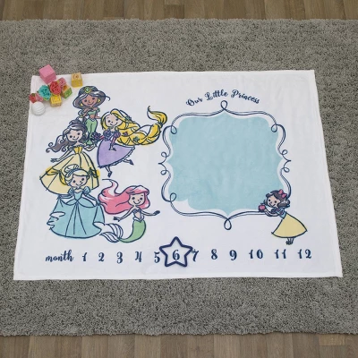 - This milestone baby blanket features Disney Princess’s in snuggly soft fabrics