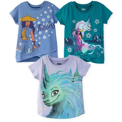 Give your little one the gift of Disney magic with this Raya and the Last Dragon short sleeve graphic tee shirt. Join the newest Disney Princess as she journeys with her noble part-pill-bug, part-armadillo, part-pug steed Tuk Tuk through the world of Kumandra in order to find the last dragon, Sisu, and bring harmony back to the land. Along the way, help Raya battle against her formidable nemesis, Namaari of the Fand lands. Watch as Raya’s fierce warrior guardian comes to life through your little one’s adventurous and determined nature. Your little princess will love this Disney Raya 3 Pack Crossover Graphic T-Shirts featuring her new favorite animated character so much, they will always want to wear it.