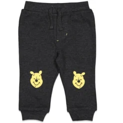 - Screen-print of Pooh’s adorable face on dark gray pants; Artistic design of Pooh and Tiger with the phrase “Hello there” on yellow pants; All-over print of Pooh with colorful polka dots on white pants