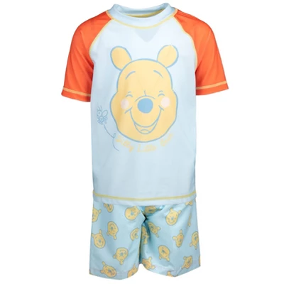 - Officially licensed Disney Winnie the Pooh toddler boys cool and stylish short sleeve swim shirt top and cute and stylish swimming shorts bottoms