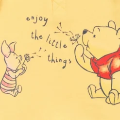 Take a fun trip with Christopher Robin to the Hundred Acre Wood to join in on the many adventures of Winnie the Pooh! Your little “Hunny” will feel right at home with tree house neighbors like Pooh and friends. Give silly ol’ Pooh bear a helping hand with filling his honey pot. Then join Pooh in gardening with Rabbit, learning something new from Owl, bouncing around with Tigger and Roo, rescuing Piglet with the help of motherly Kanga, and cheering up Eeyore by giving him a tail. Watch as these classic stuffed animals full of fluff come to life through your child’s similar kind and thoughtful nature. Your little cub will always have their favorite teddy bear book, TV, and movie character with them while wearing this Winnie the Pooh Short Sleeve Romper. Your little one will love this cute and stylish short sleeve one-piece romper so much that they’ll always want to wear it!