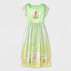 Her dreams will be extra magical when she heads to bed in the Disney Princess Tiana’s Palace Nightgown. Crafted in a soft green and lemon color scheme, this Disney princess nightgown features a sweetheart-neck satin bodice sporting her favorite royal, Tiana, on the front with floral accents. It gently flares down into the skirt designed in an ombre color scheme, and features silhouettes of Tiana and her palace, along with colorful florals and her crown along the hemline for added flair. This girls’ pullover nightgown also has a shimmery mesh overlay and matching cap sleeves for a hint of flowy charm, while the satin flower brooch in yellow on the waistline adds to her already sweet look.