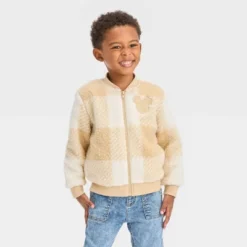 Prep your little one for cool-weather fun with this Disney Mickey Mouse Printed Fleece Jacket. Crafted from a soft fleece fabric, this long-sleeve jacket features ribbed cuffs and a ribbed hem for snug comfort. The front full-length zipper allows for easy layering, while two side pockets come in handy for stashing small toys. Designed with a banded collar, it features a plaid print in muted hues, while textured Mickey Mouse face and ear details on the chest bring sweet Disney style.