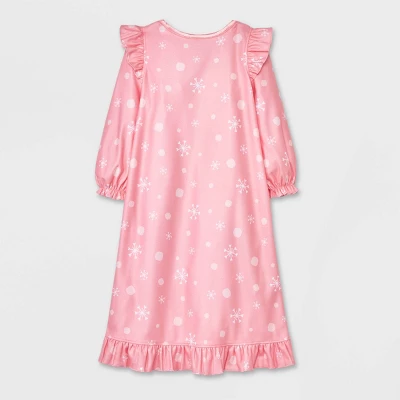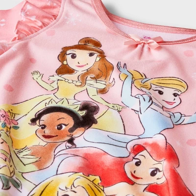 Keep your toddler comfortable all through the night by dressing them in this Disney Princess Nightgown. This pink long-sleeve nightgown features a vibrant and colorful print of Disney Princess characters for a fun-themed look. It’s decorated with frills on the shoulders and hemline, along with a cute bow detail for a sweet touch of style. The lightweight material lends comfy wear, while the pullover crewneck allows for easy dressing. Layer this nightgown over pajama pants or leggings for extra warmth when the weather cools down.